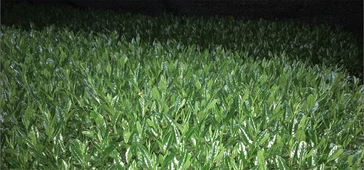 When tea leaves are deprived of sunlight, several important chemical processes take place in the plant that brings the unique appearance and flavor of the Gyokuro. Since it is difficult for the leaves to perform photosynthesis when in the shade, plants overproduce chlorophyll molecules and amino acids to make up for it. Chlorophyll is what makes the leaves green and this is the reason why the Gyokuro has a deep green color.